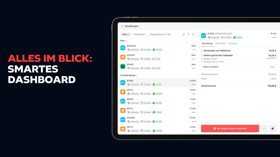 Schluss mit App-Hopping: Du managst Bestellungen, Menüs, Bestände und Standort-Infos in einem Interface – Deiner Kasse.